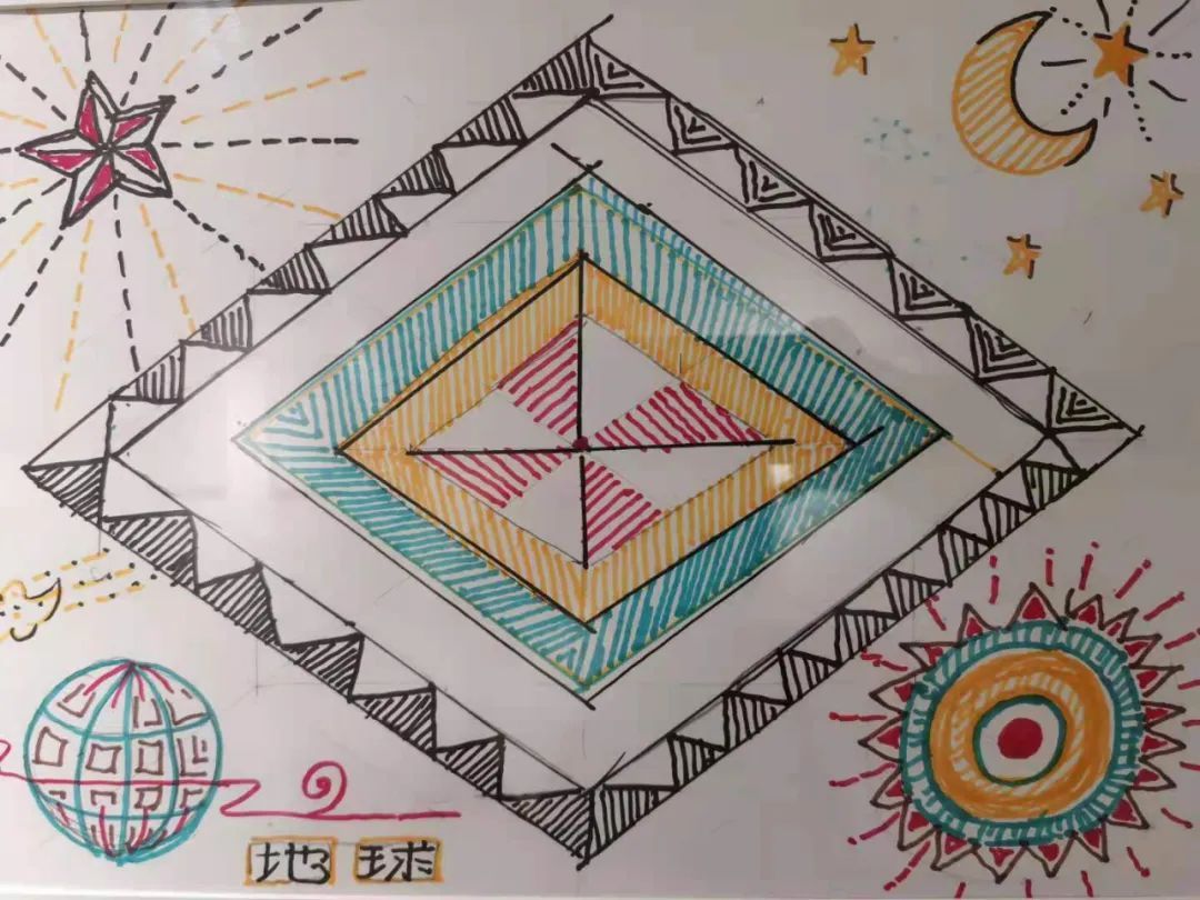 站在画框和灯光等设施都尚显简陋的画廊里,陈智民向记者介绍起其中的几幅作品:那幅叫《神仙的地毯》的作品,作者是一位长期精神分裂症的老患者,病前是香烟厂的设计师,所以原本就有一些设计功底。他的画大部分都与黑洞有关,也包括宇宙中的其他元素。《神仙的地毯》有一种很和谐、对称的美感,较别的作品符号感更强,装饰意味更加明显,而且各种符号连在一起,还带点宗教意味。病人想画的并不是一个简单的符号,而是一张菱形的地毯,寓意自己能够乘坐地毯遨游星空。从画中可以看到,虽然病人长期身处精神病院这个比较狭小的空间环境,他的精神却向往自由、辽远,甚至比常人更加天马行空。对此,陈智民认为,人的精神原本就具有一种向外、向上、向远处的本能,如果现实中人的生活变得很狭窄、很单调,这种本能被严重地禁锢了,反而会刺激人从精神上去追求更加广阔、更加高远的东西。也可能正是因此,许多病人会喜欢画星星。
