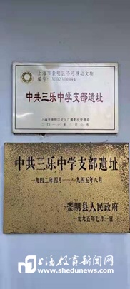 崇明县人民政府颁发的铭牌上,中共三乐中学支部创建与发展时间清晰可见“一九四二年四月——一九四五年八月”。2017年,中共三乐中学支部遗址被命名为“上海市崇明区不可移动文物”。在2020年上海市“阅读建筑 学习‘四史’”微视频征集活动中荣获“历史传承奖”和“最受师生喜爱作品奖”。它就是中共三乐中学支部遗址,是学校发展史中的红色基因之源。