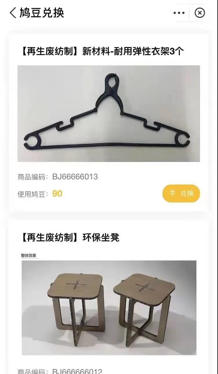 该智能回收机由周家桥街道辖区企业斑鸠回收研发,实现了“不用电,不耗能,有偿回收”,企业将回收的旧衣服作为基础材料,制成环保衣架、凳子和象棋桌等日常用品,再通过积分兑换礼品的形式,重返居民手中,让环保看得见,摸得到,用得着,真正的实现环保大循环。