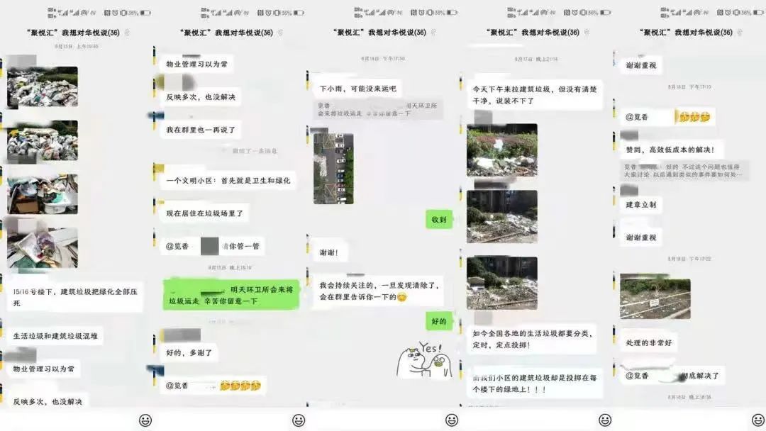 “聚悦汇”成立至今,已收集华悦家园居民建议60多条,包括非机动车停放、社区绿化、文明养宠、垃圾清运等方面的建议和意见,“聚悦汇”的线下第一次会议邀请居民委员会、业主委员会、物业公司代表等,围绕居民们最为关注的非机动车停放和垃圾清运这两个方面展开讨论。