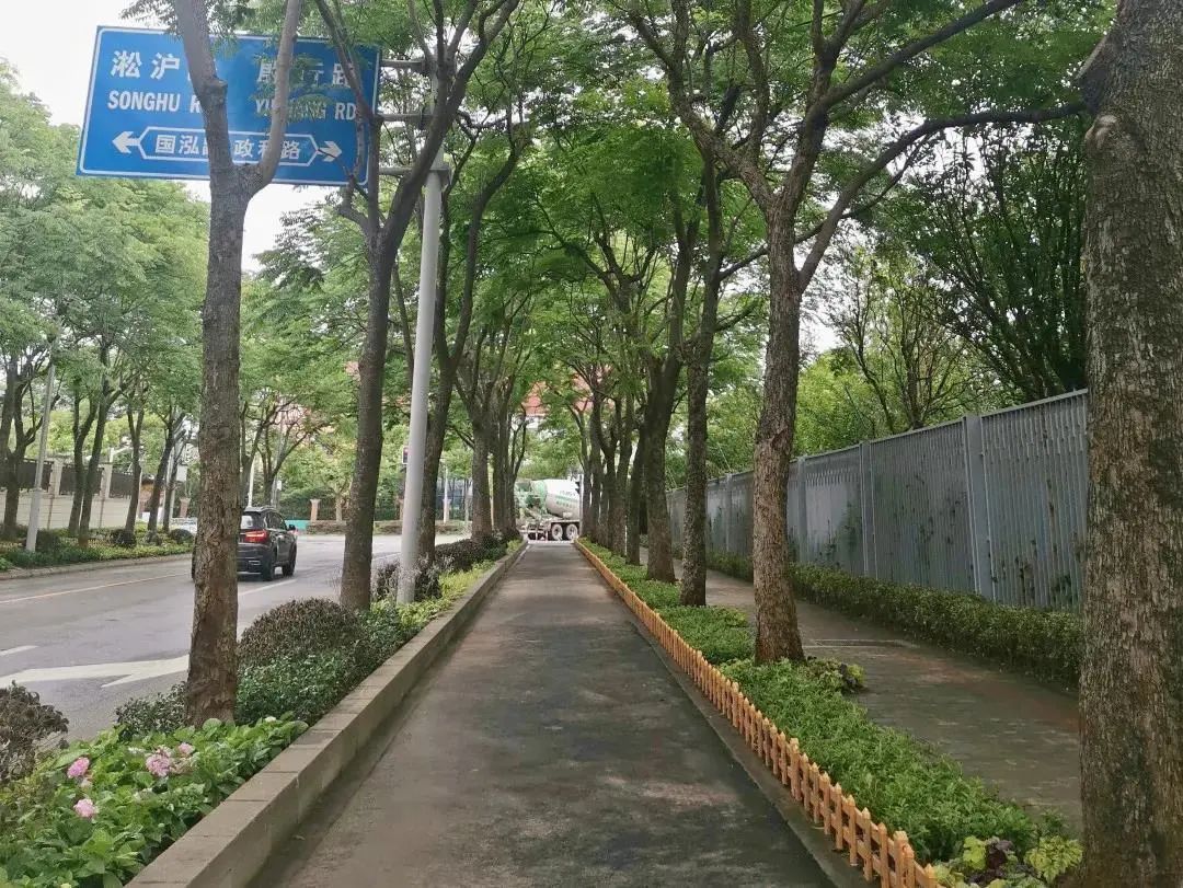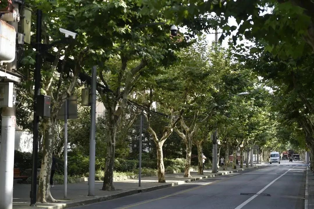 政澄路(殷行路-国泓路)市级林荫道,两侧朴树高大舒展,遮光蔽日。