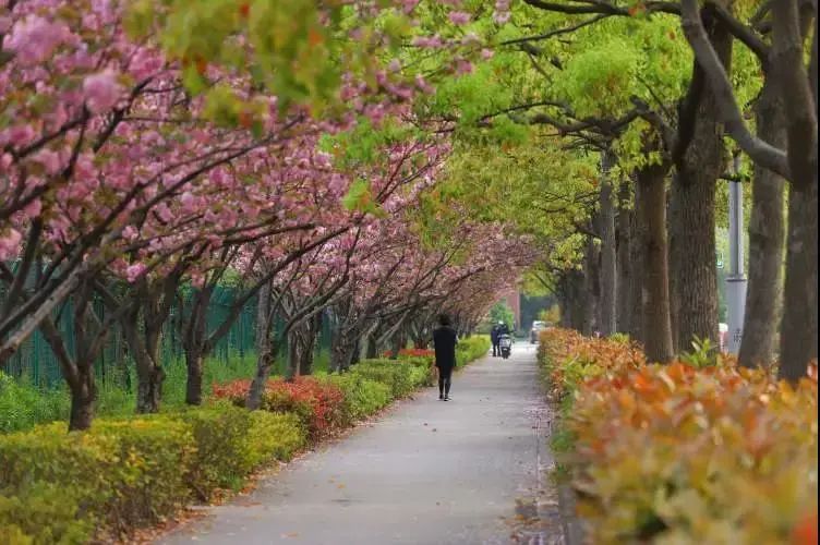 江湾城路(殷行路-清波路)市级林荫道种植有清新的香樟和浪漫的日本晚樱,在各个季节,都能“色彩缤纷”。