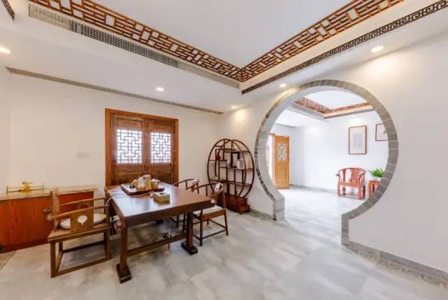 思乡园整体采用了苏州园林风格,移步换景,内敛稳重。院落布局为经典的四合院式,不像北京的几进几出的四合院,相对简约,白墙灰瓦,各个细节透入出中式元素。庭院内还有假山,凉亭流水,古色古香。