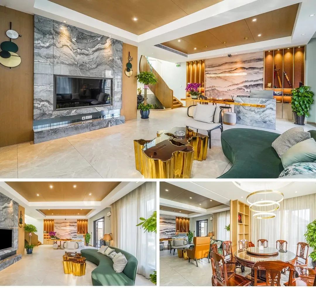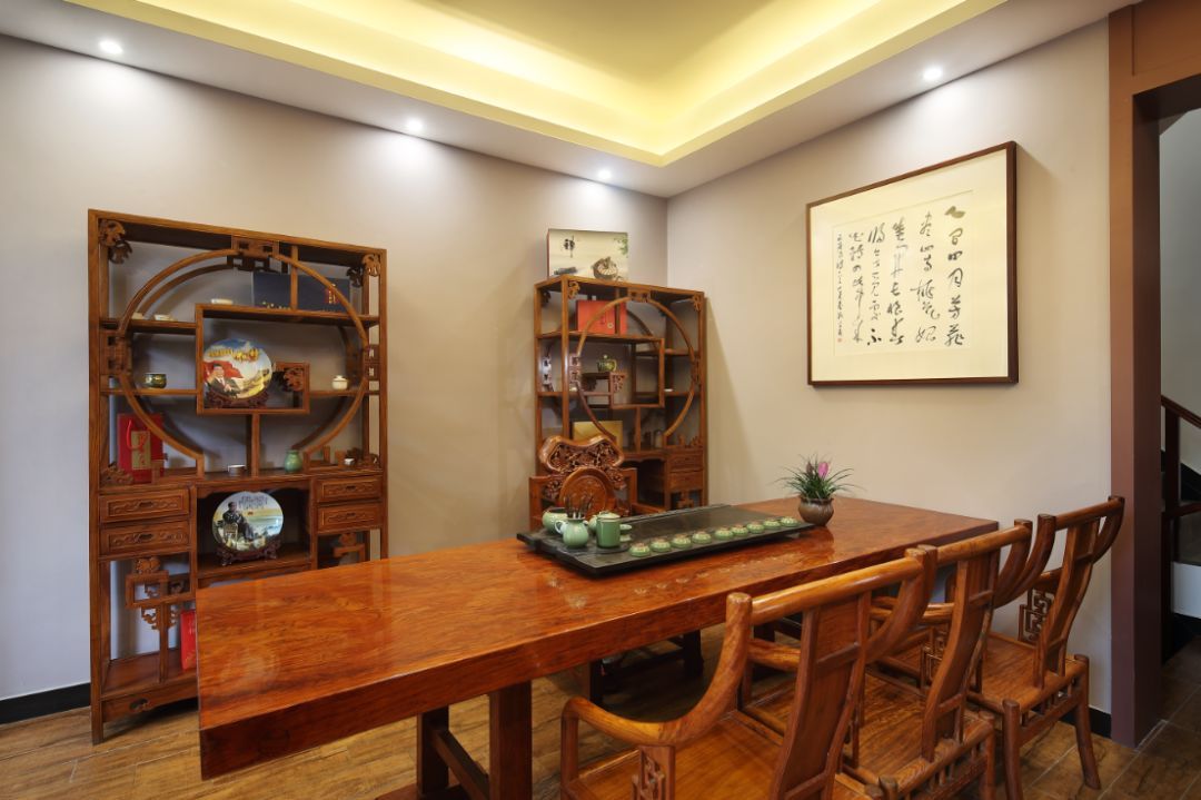 思乡园共有5间观景套房,4个标准间、2个三人间、1间大床房、1间豪华套房,满足公司团建、家庭聚会等多场景需求。屋内整体为新中式风格,全屋采用红木家具,配以书法大师亲笔手书字画装饰,端庄优雅,展示中式古典之美。