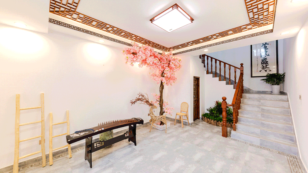 民宿共有6间房,房型有大床房、标间、套间,房间设计为新中式,有地暖、空调,典雅而又温馨。每一间房间内智能化的灯光、窗帘、背景音响,均可在你的掌握之中,带给您不一样的体验。