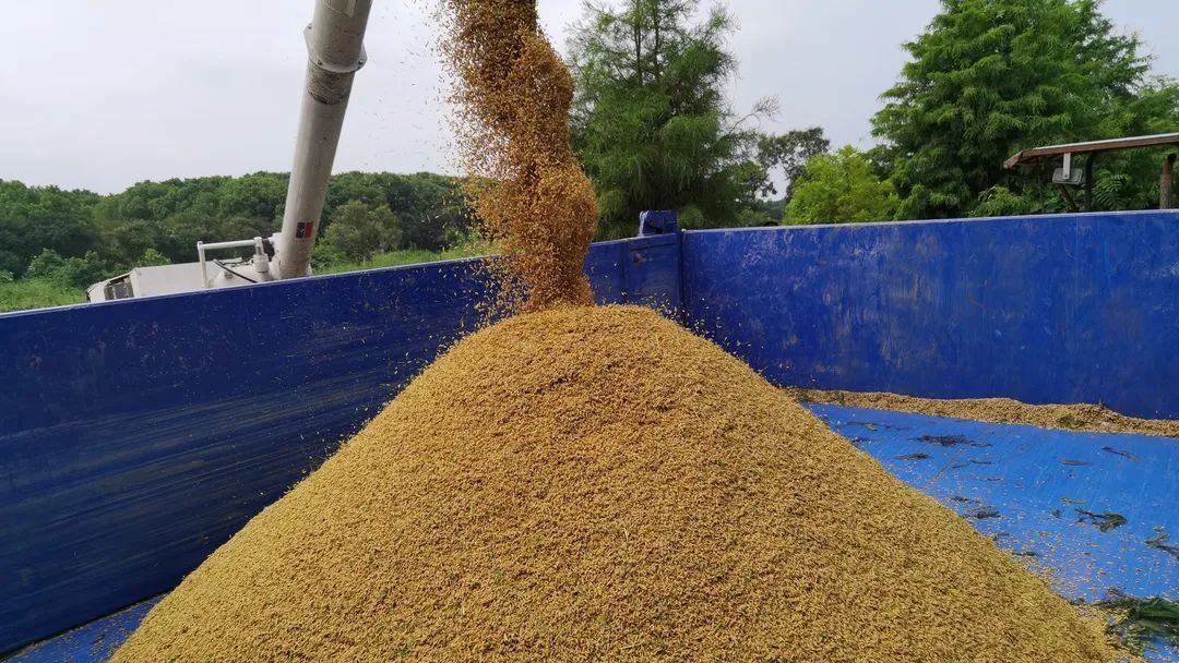 上海优禾谷农产品专业合作社负责人丁晓欢介绍,今天计划收割15亩稻田,亩产可达900-1000斤稻谷。松早香一号具有抗病性强、抗倒伏性强的优点,新米形状比圆润的晚稻细长,口感香糯,比普通稻成熟时间提前1个月。