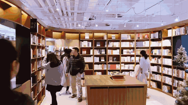 700平方米的馆以丝带形书架分隔,划分为沙龙区、精品区、美学区、咖啡甜点区及亲子绘本区,设有阅览座位近100个。书房中央的沙龙区为主要阅读区域,经常举办讲座、沙龙等活动。