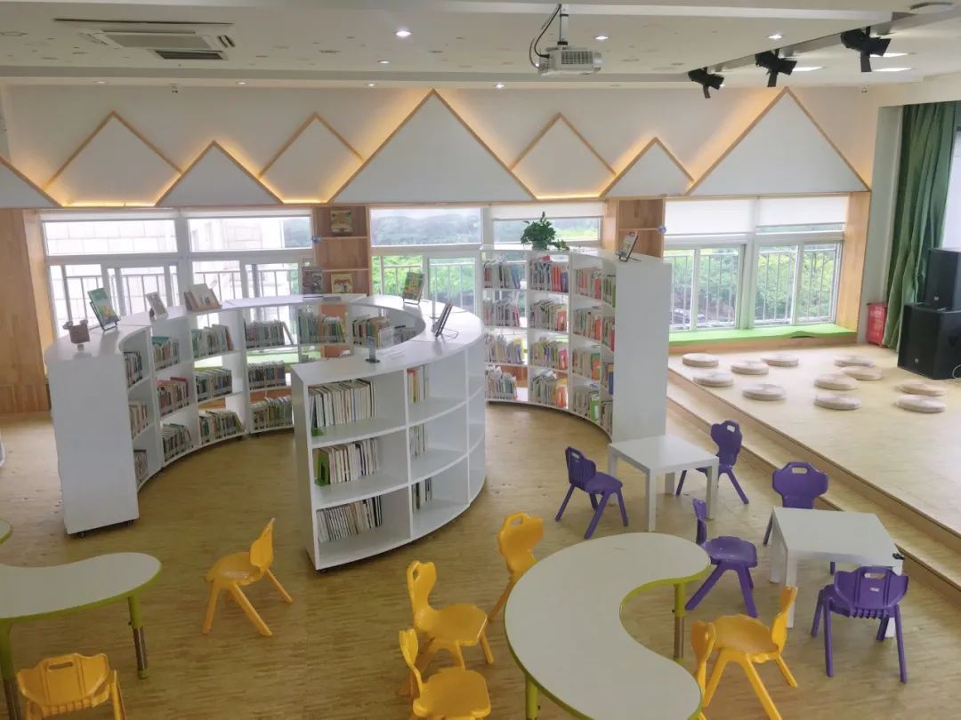 “我嘉书房(外文绘本馆)”占地150平方米,透过馆内超大落地窗可以饱览紫藤公园的美景。彩色的智慧门、席地而坐的蒲团、可爱的卡通座椅、童趣满满的走廊,温馨舒适的环境让孩子们流连忘返。创新的风格、专业的服务也为孩子营造了多元化的学习空间。