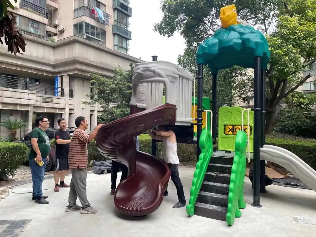 目前,儿童友好社区建设项目已进到最后的器械铺设、调试阶段,在不久的将来便会投入到使用中去。