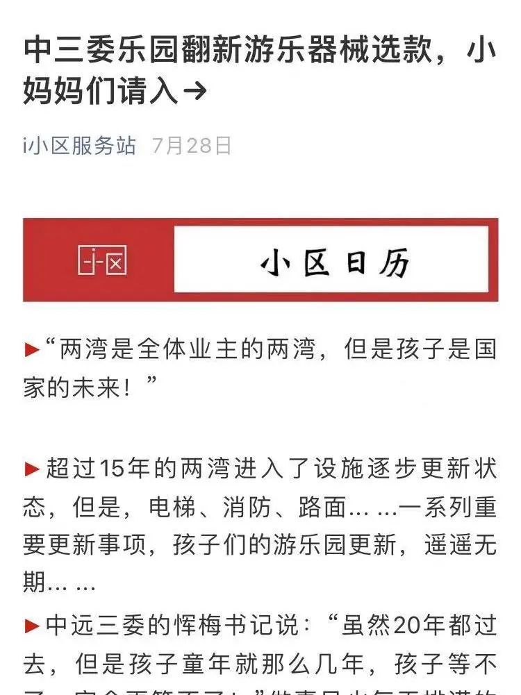 经过前期的调研和摸排,中远两湾城第三居民区决定对小区内的儿童乐园进行微更新,并希望以“小手”带动“大手”,引导居民积极参与到社区共建中来,做到“民事民议、民事民决、民事民办”,营造温馨的社区氛围。