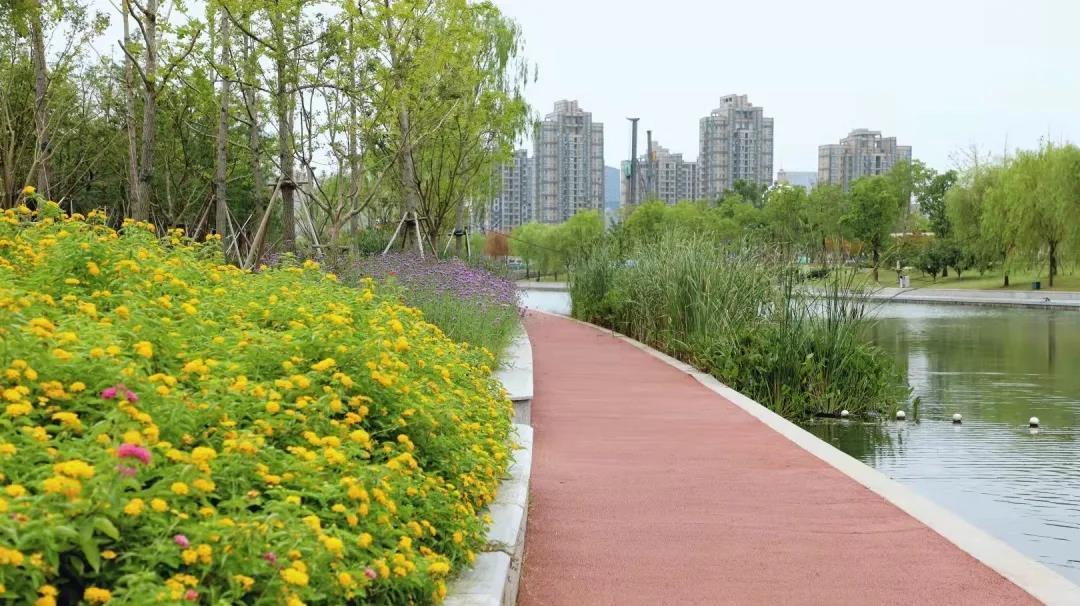 四面环水的年丰公园,行走在绿道、伴随着花香,在草坪上露营、环金海湖漫步、于观景台眺望,让节奏慢下来,置身于自然,感受生态让生活更美好。