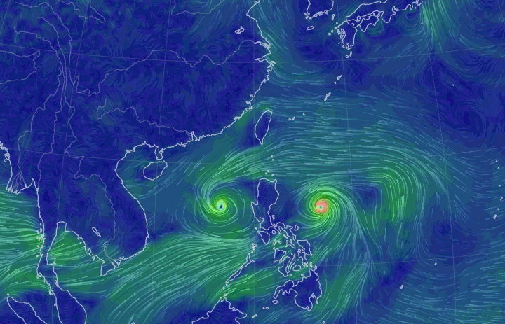 由于有“双台风”存在,预报路径和强度有很大的不确定性,请及时关注最新的信息。