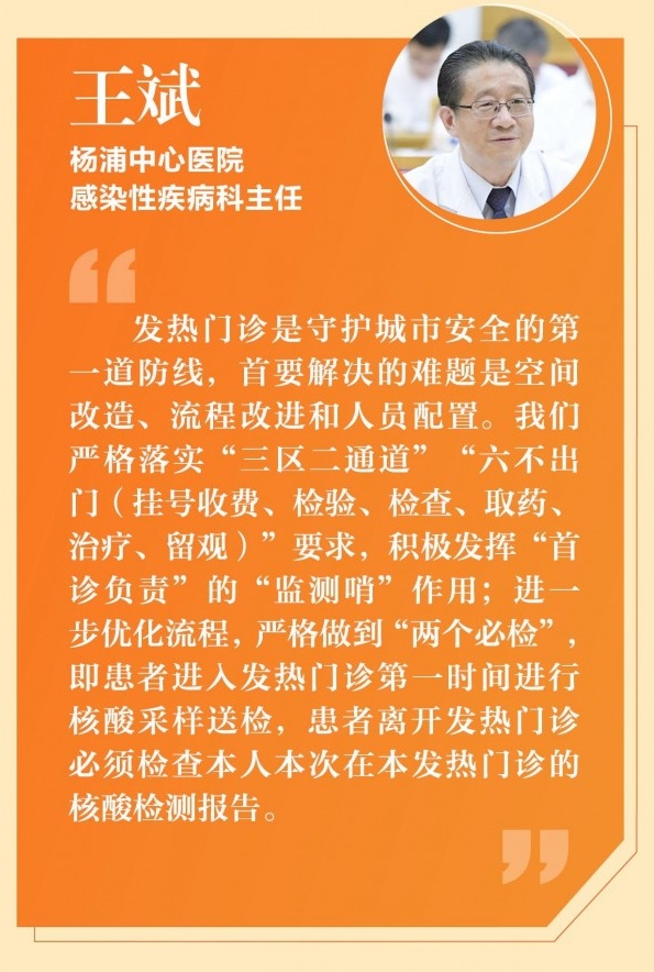 “20个月的抗疫时间里,我积累了许多实战防控经验,发热门诊是城市安全的第一道防线,把好关口,我们责任重大。”杨浦区中心医院感染性疾病科主任王斌说。自新冠疫情暴发以来,这名感染领域“老兵”便率领团队,一头扎进繁忙工作,绷紧疫情防控一根弦,守住了“院内感染零发生、医务人员零感染”的底线,护佑了一方百姓安康。