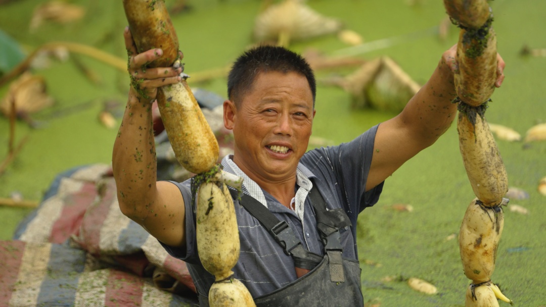 在莲湖村,这里有着“千亩莲塘”,这个季节还有许多在泥里“淘金”的挖藕人。