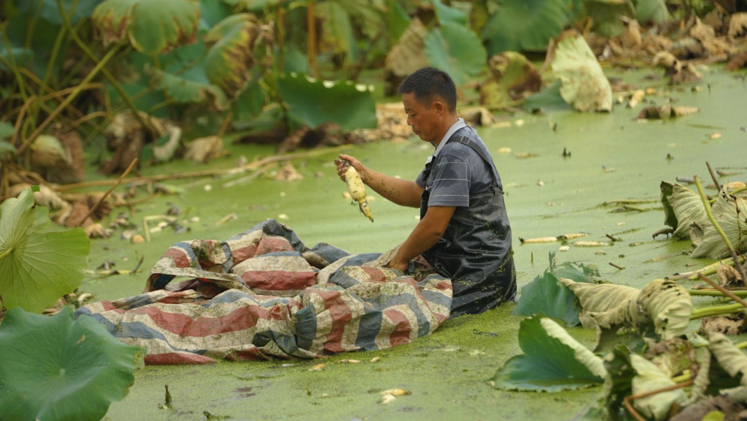 立秋过后,莲藕已经进入了采挖季。白净的莲藕藏在淤泥深处,就像是一个乖乖的娃娃,安安静静躲在那儿。
