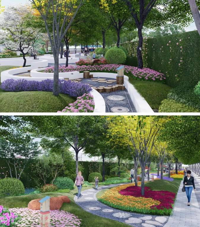 “德园”社区公园,以“相地而为,让土地可以呼吸;返璞归真,共筑生态林间”为理念,使人们走进绿色、亲近自然,感受美美与共的人境和谐。