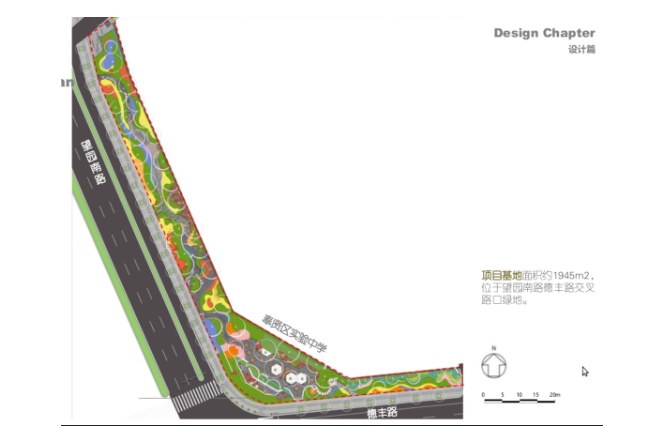 德园,属于奉贤“满天星”工程的“千个连接点”之一,位于德丰路望园南路东北角,面积约2000㎡,两端各临地块出入口,左右边界分别为学校和城市干道。