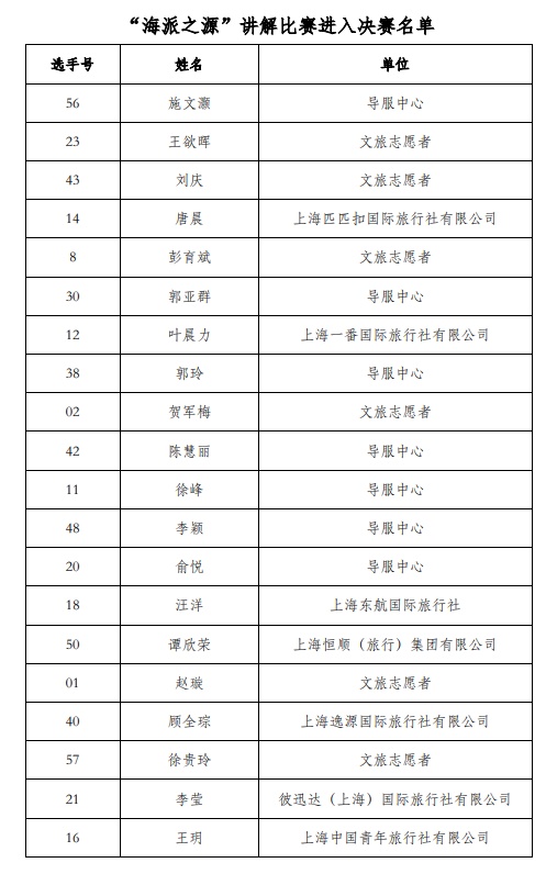 评委们认真聆听每一位选手的讲解,并对选手的表现做出评分。比赛结束后,经过评委们公平公正地评分,选拔赛中共有20名选手进入导游组决赛(名单见下图)。