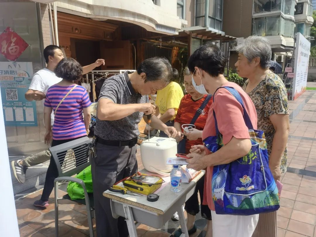社区公益伙伴志愿者则在现场开启家电维修、手表修理、理发等服务活动,为居民提供喜闻乐见的志愿服务。