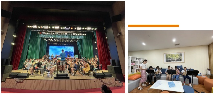 在小剧场内,绿韵民乐团的小学员们正在进行演奏训练,乐团现有一团、二团、三团三个梯队,团员300余名。舞台上伴随音乐节奏律动的小小身躯和阳光般灿烂的笑容,让每一位小乐手都散发着自信的魅力。