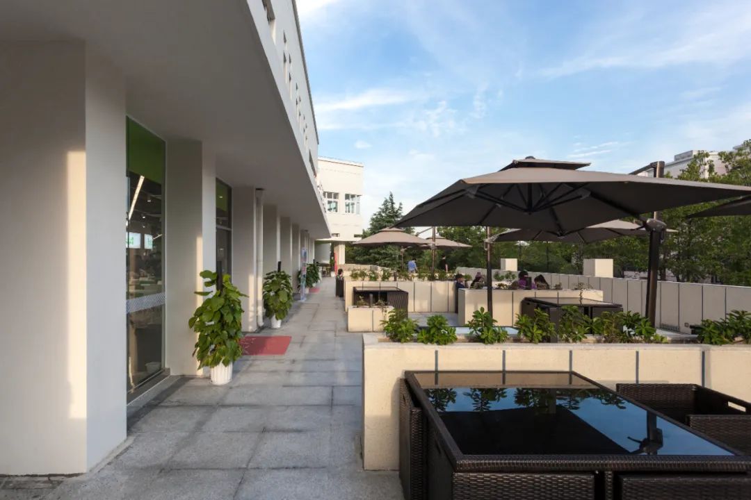 上海大学宝山校区尔美餐厅维修项目于2020年6月开始施工,8月竣工。通过本次维修,充分利用二层平台设置景观就餐位,让原本闲置的平台空间得到充分利用,同时也丰富了餐厅室外景观,让餐厅室内外都充满了活力和生机。