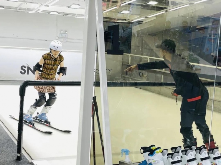 记者在全新焕新的浦东花木店二楼看到,不少消费者正在体验迪卡侬和合作伙伴开设的室内滑雪项目,有着专业的高山滑雪模拟机,还配置各种运动装备。在这里,即使不登上雪山,也能感受到滑雪的乐趣。