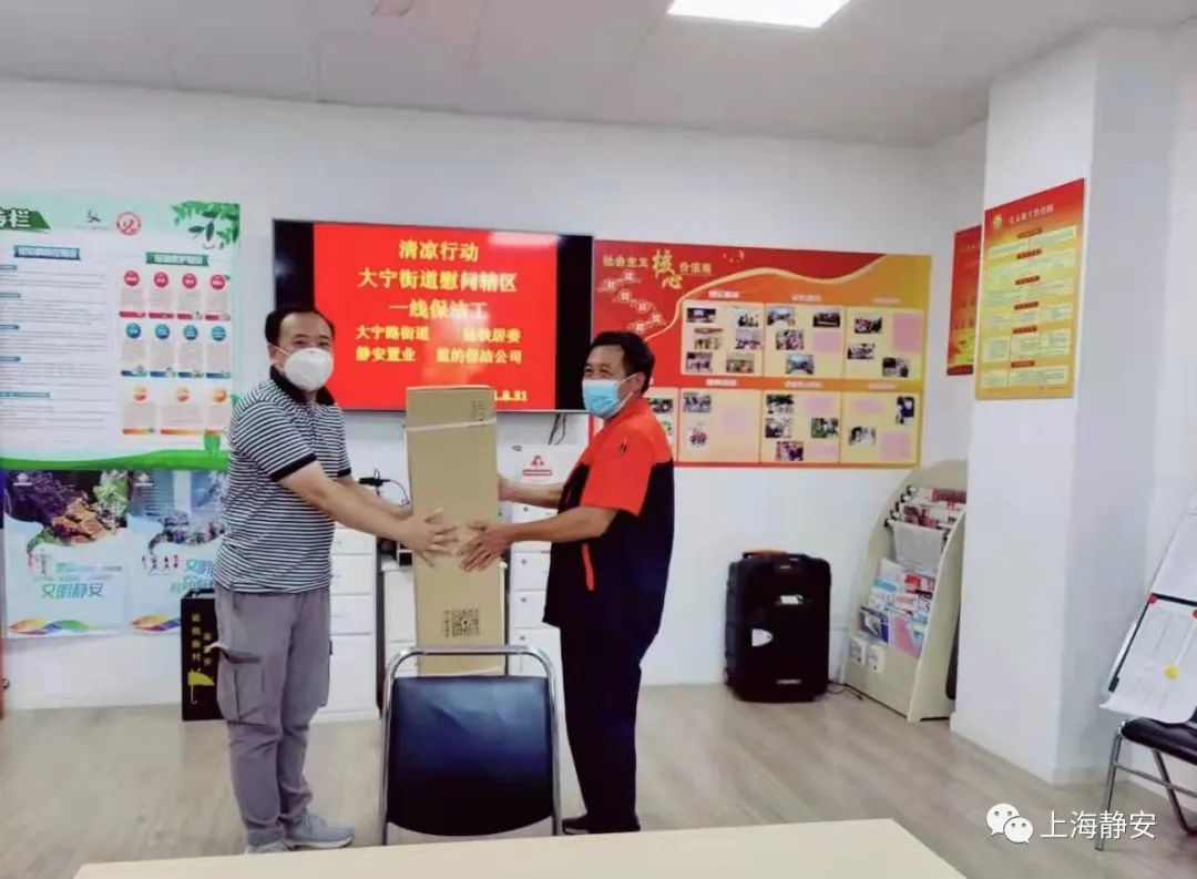 此外,大宁路街道垃圾分类督导工作组考虑到小区保洁人员和志愿者露天站岗作业辛苦,在与居委会、业委会和小区物业共同协商后,动员小区蓝的保洁公司购置了五台空调风扇,用以改善一线保洁工的工作环境。