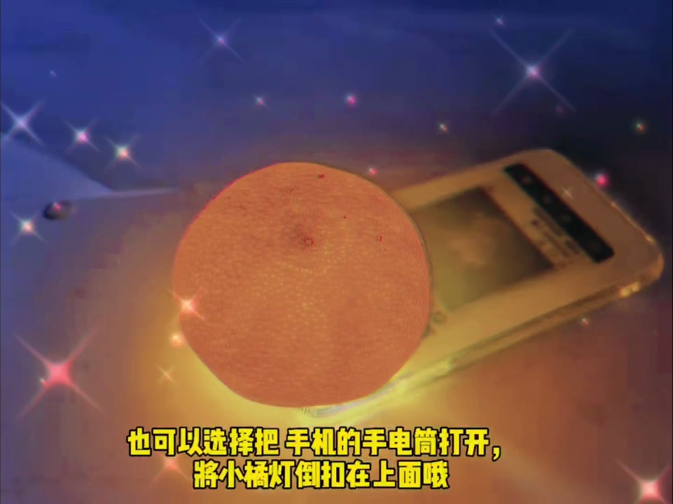 “懒癌”晚期星人也可以直接将桔子倒扣在手机上,同时将手电筒打开,简易的小桔灯就完成啦~
