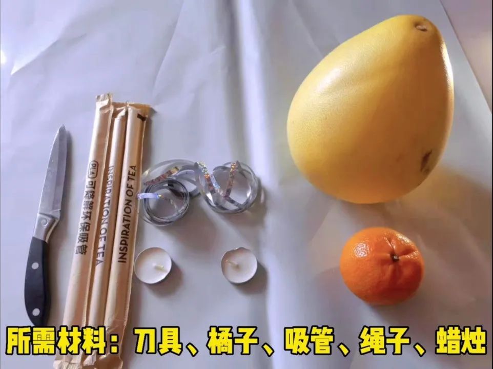 桔子或柚子、刀、吸管、绳子、蜡烛