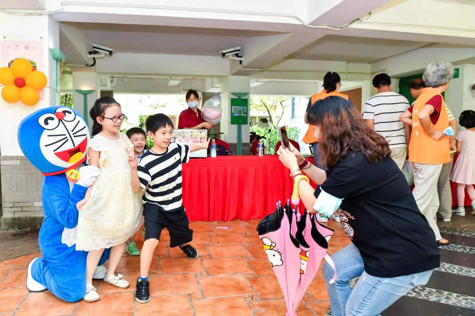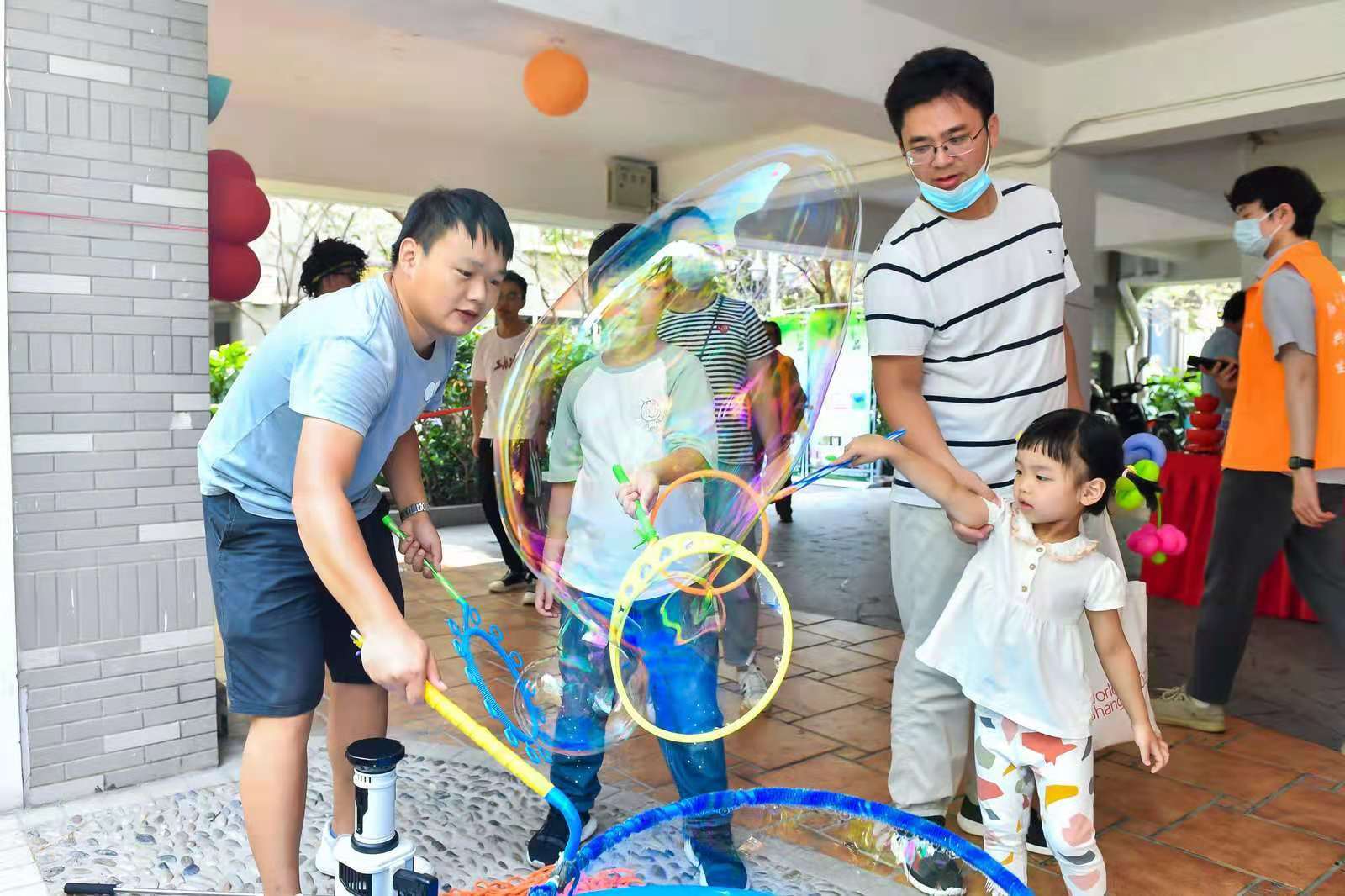 而设立在新福康里小区架空长廊和石门二路凤阳路国泰君安门口的邻居节活动区域,也吸引了许多居民前来参与。特别是新福康里小区内,民间艺人演绎的杂技小丑、泡泡秀、魔术气球、糖葫芦、糖画、棉花糖、棕编等各类技艺让社区大人小孩看得津津有味。