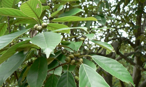 苦槠,叶片厚革质,兼有防风、避火作用,是良好的防火树种之一。苦槠果实的外表与板栗类似,种仁富含淀粉,浸水脱涩后可制成苦槠粉,进一步加工可制成苦槠豆腐、苦槠粉丝、苦槠粉皮、苦槠糕,是补脾益胃,清热润燥的佳品。