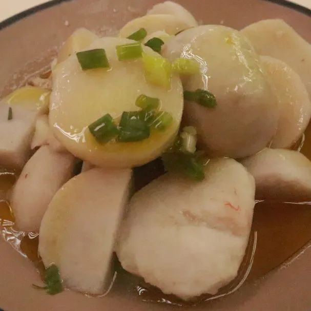 芋艿入得甜汤,也下得了油锅。葱油芋艿烹出芋头的粉和软,再点缀一些葱味,个个粉圆奶白,风味独特,轻轻一抿,就在口中化成细密的芋艿泥,葱香溢满唇舌间。