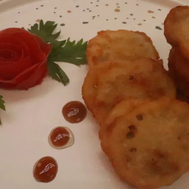 中秋食藕,也是寄团圆之意,又香又酥的“藕盒”怎么能错过,两片藕下端相连,中间夹满肉馅,外皮金黄,一口咬下去,藕片爽脆解腻,肉馅绵香嫩滑,回味无穷。