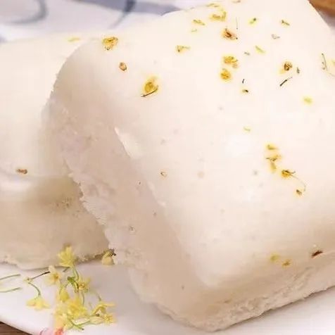 桂花糕更是秋季老网红了,以大米糕为底,加以糖桂花调味,松松软软,香香甜甜。