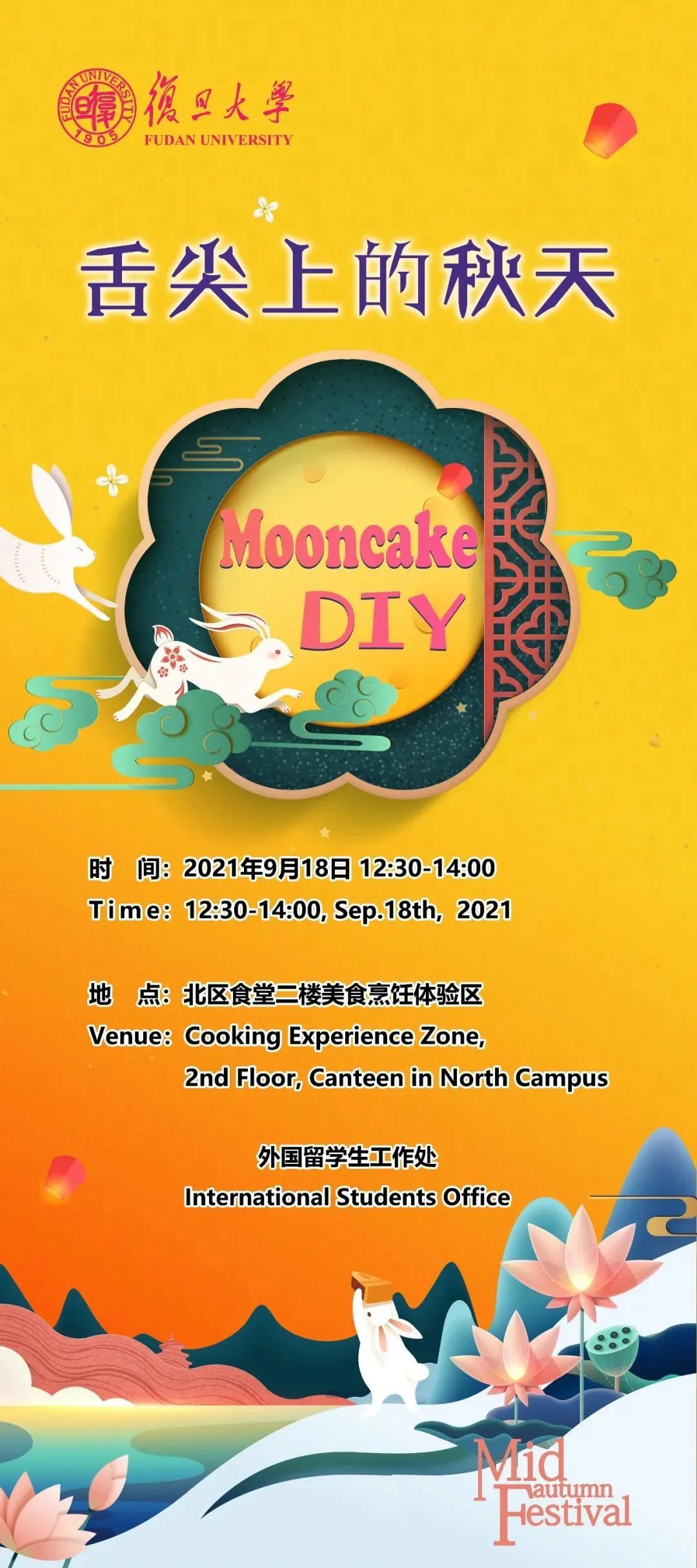 今年中秋,由复旦招生联合总务处举办的中秋游园灯会活动来啦!快来与小伙伴一起,在炫彩浪漫的剪影灯下,共度新学期第一个小长假,收获来自复旦的满满关怀吧!
