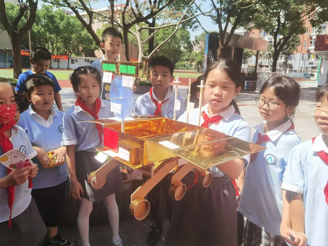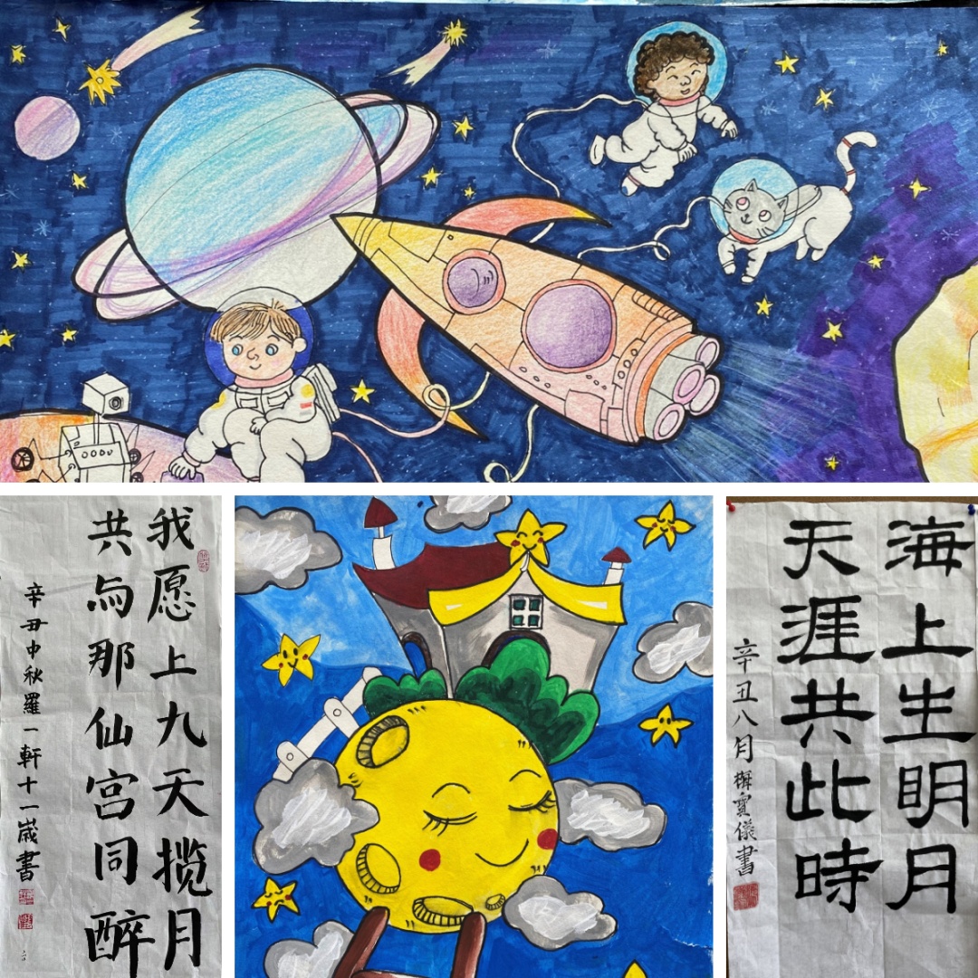 科技是山间明月,清辉如梦,朗朗乾坤。从嫦娥奔月开始,上九天揽月一直是中国的美好梦想,有人说中国人不懂浪漫,但其实,在几千年的岁月里,中国人民不断地拼搏实践,以中国人独有的浪漫,为冰冷的科技赋予诗意。洞泾学校大队部以“我愿上九天揽月”为主题,在继承和发扬优秀传统文化的同时,通过“100种登上月球的方法”创意科幻画创作、“百变月饼盒”创意手工制作、“我愿上九天揽月”书法作品展和征文,将科技强国的种子深埋队员心中,一同过了一个充满科技感的中秋节。