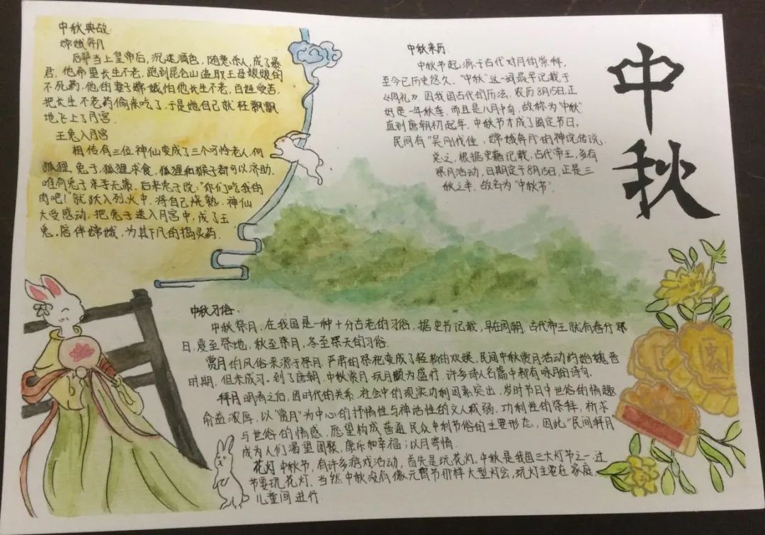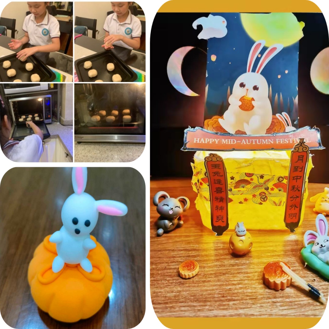 浸润式体验·实践启思:小行星们或绘一张中秋小报,或用泥塑、剪纸、变废为宝等DIY中秋艺术小作品,或和家人一起烘焙月饼……