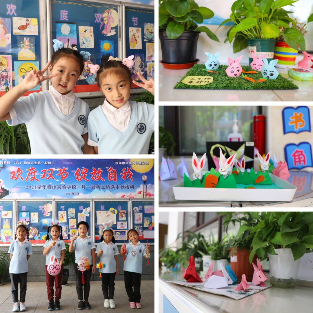 松江区泗泾实验学校结合中秋节组织了“欢度中秋 绽放自我”的主题展演,学生们与家长一起折“萌萌兔子”、做“圆圆月饼”、画“仙仙嫦娥”、装扮 “中秋小可爱”。学生在丰富有趣的活动中更深入地了解我国的传统风俗,传承民族文化,增强民族凝聚力和认同感。本次活动同学们的参与度极高,家长也纷纷能够参与其中,与孩子们共同完成创作。过程中不仅锻炼了学生的动手能力,也促进了家校紧密协作,同时将劳动教育落到实处。