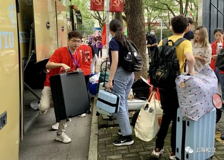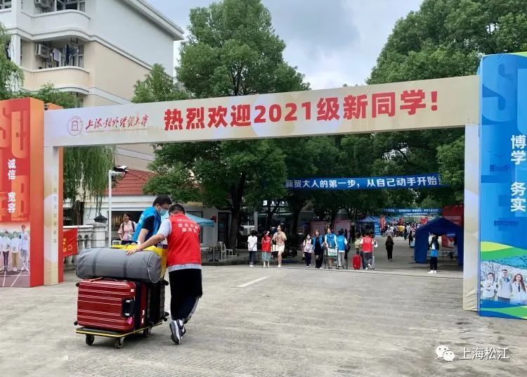 上海对外经贸大学的学生公寓大门前,迎新志愿者们身穿蓝色马甲、手拉推车帮助新同学搬运行李,俨然成了一道亮丽的风景线。他们的热情服务温暖了新同学,也让在校门外守候的家长更加安心。