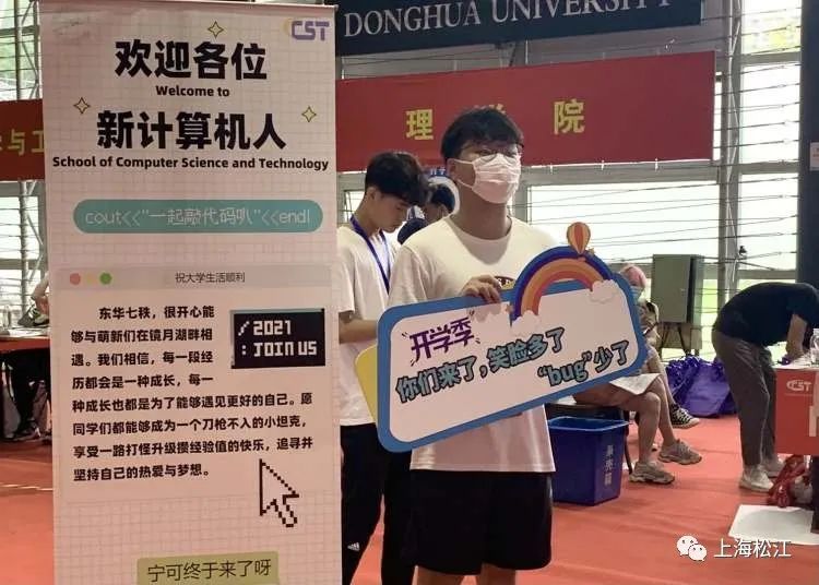 粉刷一新的大学生活动中心、醒目的横幅标语、飘扬的彩旗……即将迎来七十华诞的东华大学里迎新氛围更显浓厚,不少同学一大早就怀着喜悦的心情来办理注册报到手续。