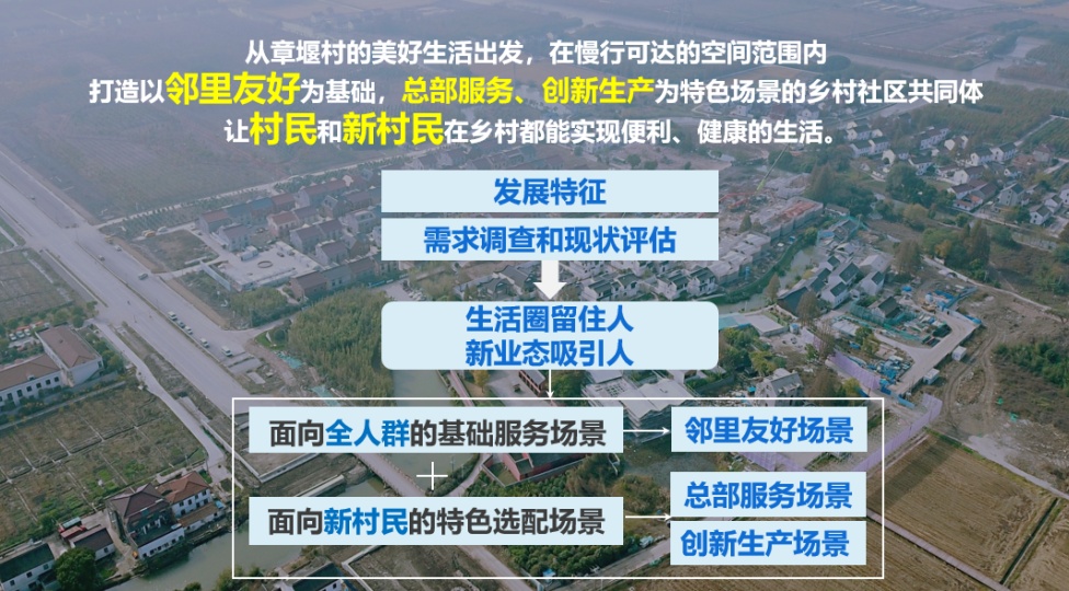 未来,章堰村将从美好生活出发,在慢行可达的空间范围内,打造以邻里友好为基础,总部服务、创新生产为特色场景的乡村社区共同体,让老村民和新村民在乡村都能实现便利、健康的生活。