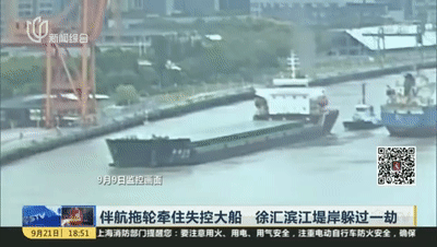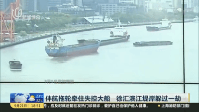 9月9日,黄浦江上两海轮弯道相遇,其中一艘海轮失控有撞向徐汇滨江的危险。