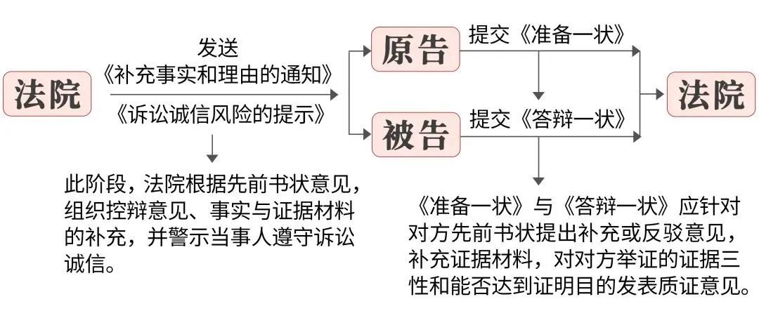 经过上述三轮交锋,如控辩双方对法院梳理的事实与争点确认无异,则书状先行告一段落,诉讼程序推进至下一阶段。如双方对法院梳理的事实与争点仍有补充或举证,则将进一步进行争点确认工作。