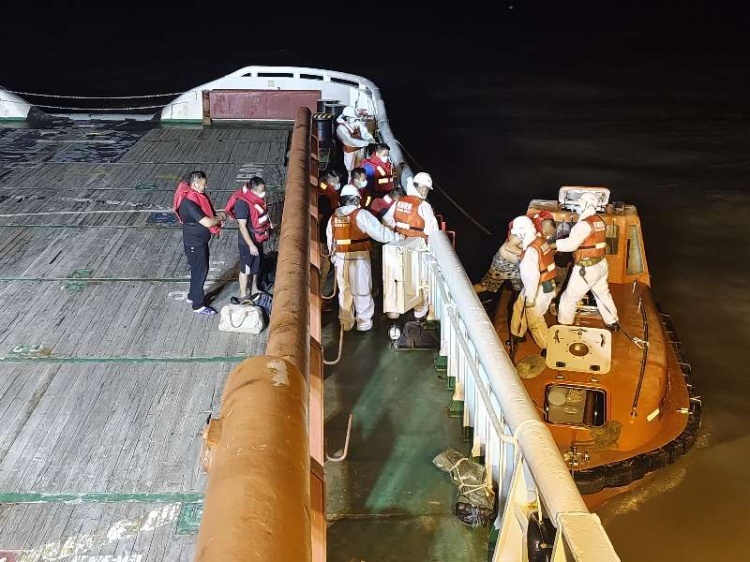 下午18时12分,经过一个多小时紧急作业,“东海救112”轮分三个批次成功将18名遇险船员安全转移至母船,至此,所有遇险人员全部获救。