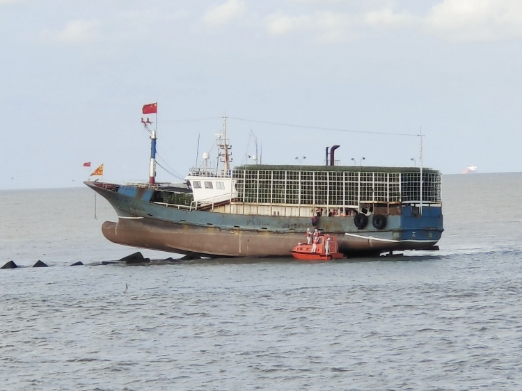 9月25日15时许,交通运输部东海救助局救助指挥值班室接到险情信息,“鲁荣渔59006”轮从岱山前往吕四港途中,在长江口北导堤附近水域搁浅,船上18人遇险,请求救助。