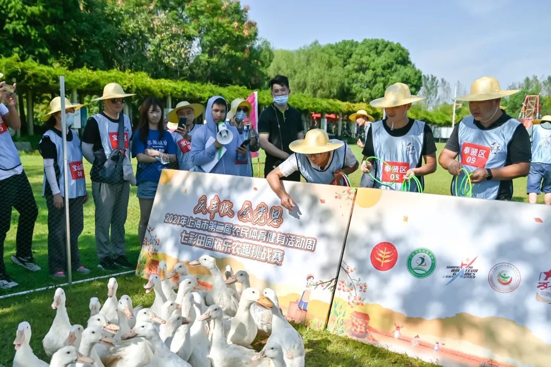 田间套鸭、池塘摸鱼……今天下午,2021年上海市第二届农民体育健身活动周七彩田园欢乐农趣挑战赛在华亭人家举行,来自全市的200名大小朋友齐聚一堂,在美丽乡村华亭的田间地头感受农趣魅力。