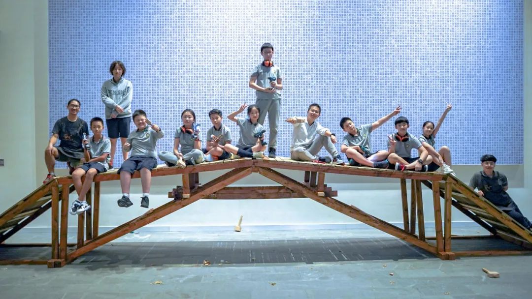 木工社团选修课的孩子们与他们亲手搭建的“浦和桥”