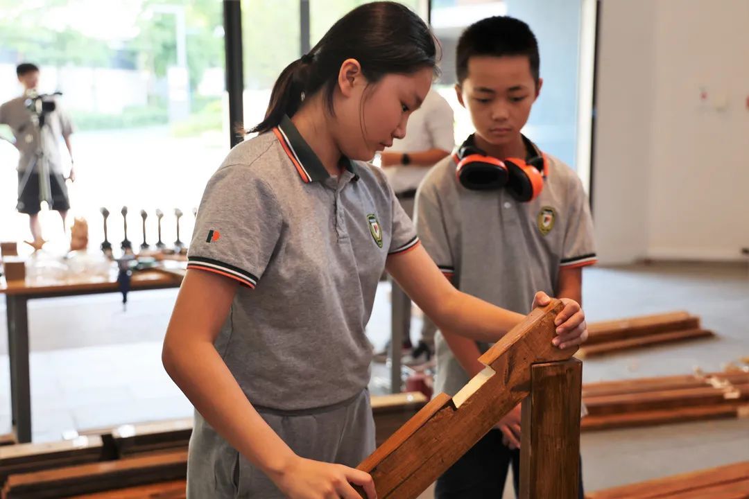 据了解,上海青浦平和双语学校建立了从小学至初中的木工社团选修课课程体系,课程分为基础课程与进阶课程两部分。
