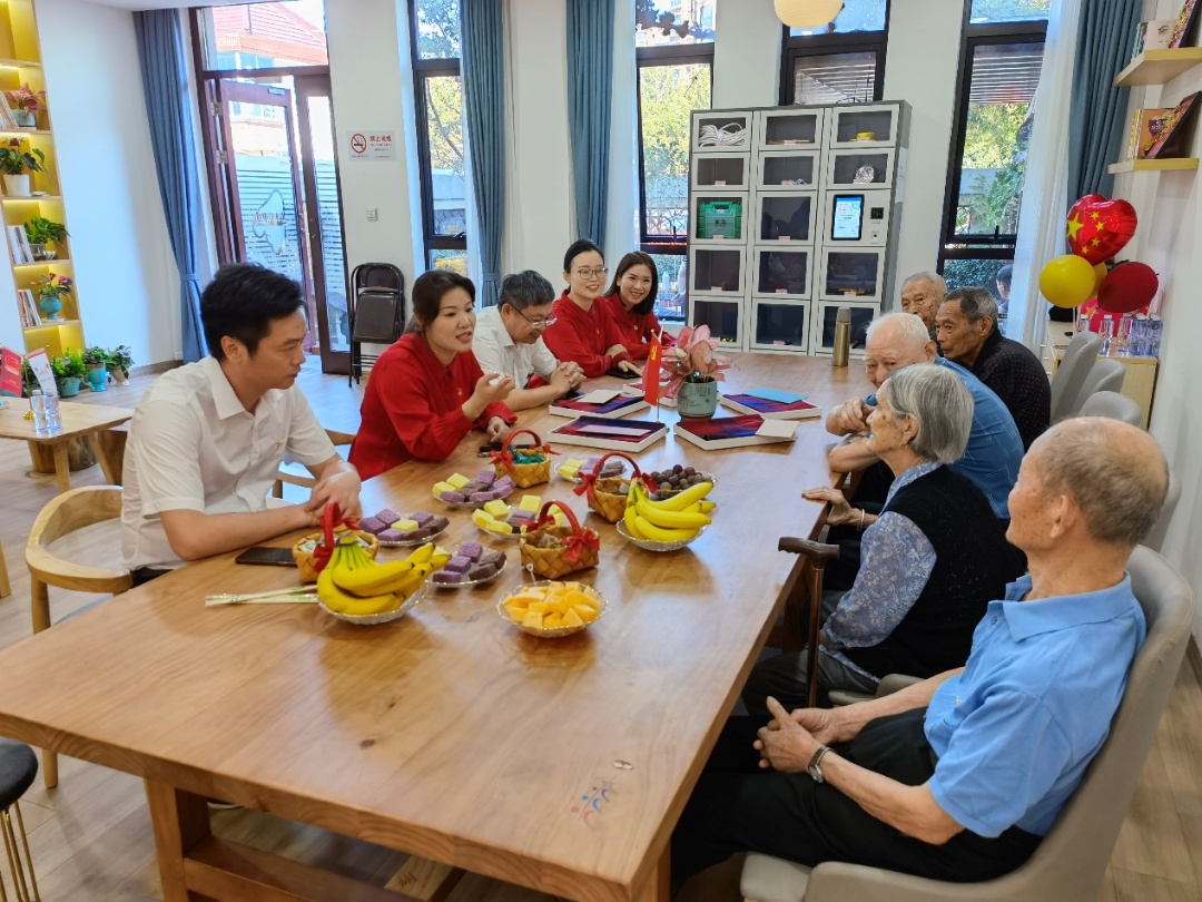 今年是中国共产党百年华诞,新时代青浦幸福社区建设在全区火热开展。徐泾镇民主村创建了新时代青浦幸福社区,小小的社区中心成了民主村民的幸福小院。昨天(9月26日),民主村特邀村里90岁以上的老人前往社区中心欢聚一堂,喜迎国庆共话重阳,喜看家乡新变化,切身感受民主村这片热土上涌动的澎湃活力。