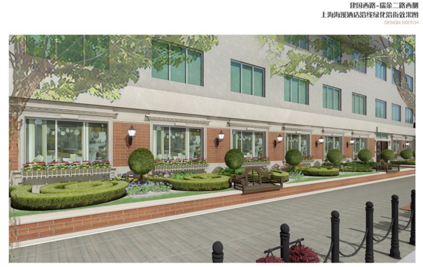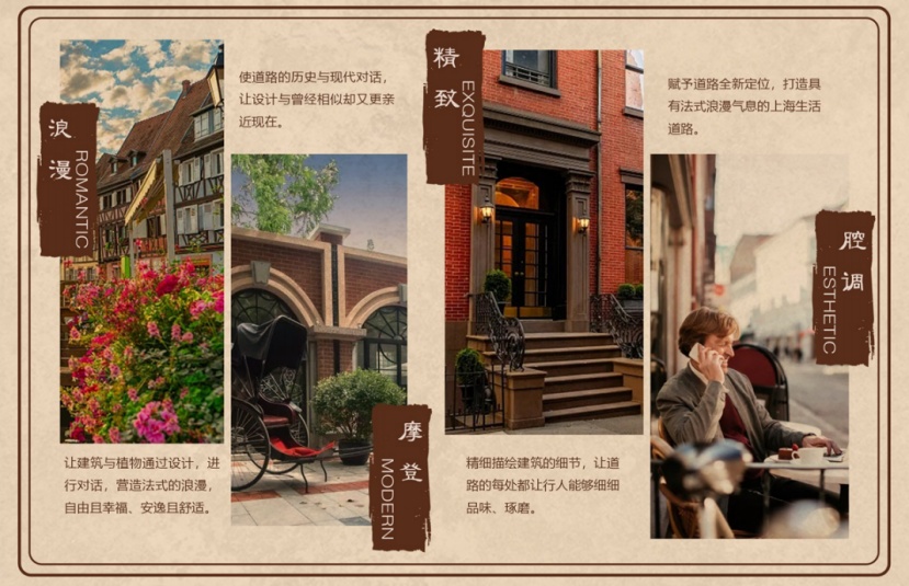 在建国路这一张画布上,本次设计将以老弄堂建筑为背景,重新描绘建筑细节的同时增加法式整形绿化,不仅在视觉上美化道路,也为海的画面上,增添了一抹浪漫与精致,让行走其中的人们可以达到一种松弛、悠然的状态,创造出一个的独特的文化走廊。